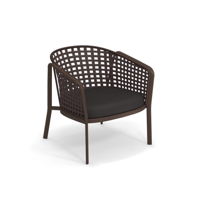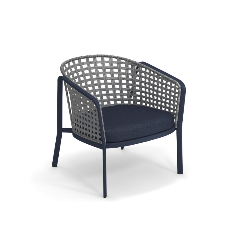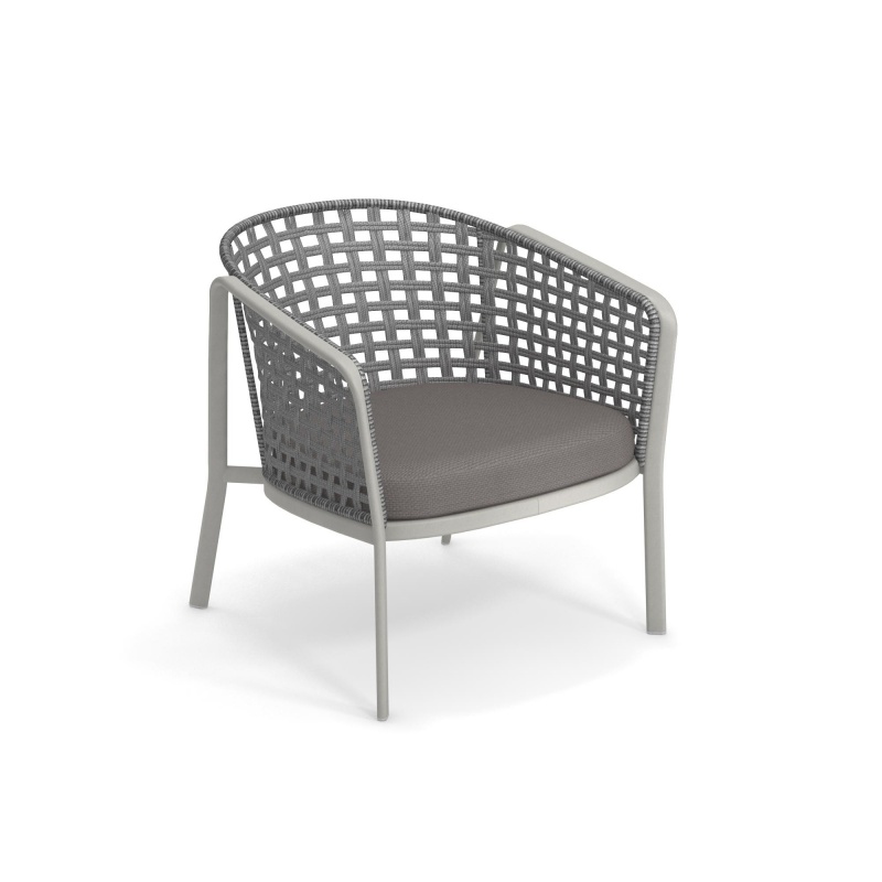 Fotel z miękkimi tapicerowanym siedziskiem i oparciem wykonanym z liny syntetycznej, wykonany z wysokogatunkowego aluminium. Dzięki nowoczesnej i lekkiej formie pasuje idealnie do każdego stylu.