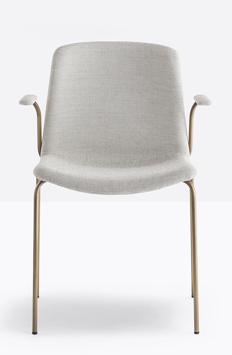 Fotel na metalowej, chromowanej, w antycznym brązie lub malowanej proszkowo ramie w kolorze białym lub czarnym, z tapicerowanym siedziskiem i podłokietnikami.