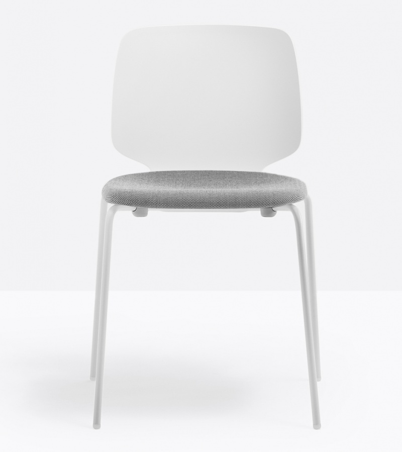 Nowoczesne krzesło z powłoką technopolimerową w kolorze białym, która wizualnie przypomina wersję drewnianą jednocześnie wykorzystując zalety tworzywa sztucznego, jego elastyczność i antystatyczność, a także komfort użytkowania. Stalowy, wytrzymały stelaż z rury o grubości 16 mm dostępny w wersji chromowanej lub malowanej proszkowo na kolor biały. Tapicerowane siedzisko w szerokiek gamie kolorystycznej poprawia wygodę siedzenia i dodaje modelowi niepowtarzalnego charakteru. Dzięki tym właściwością idealnie sprawdzi się w restauracji, kawiarni czy hotelu. Dostępne opcje kolorystyczne pozwolą dopasować krzesło do każdej stylizacji.