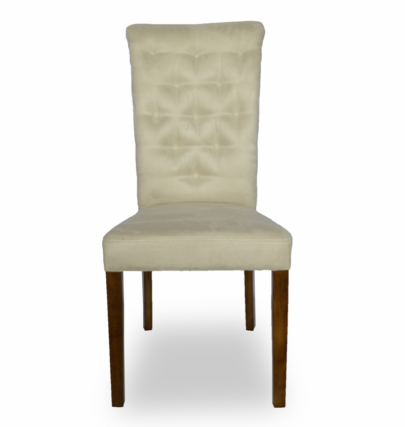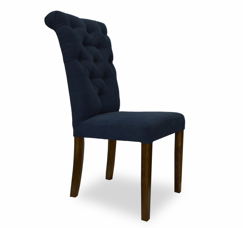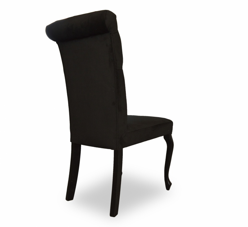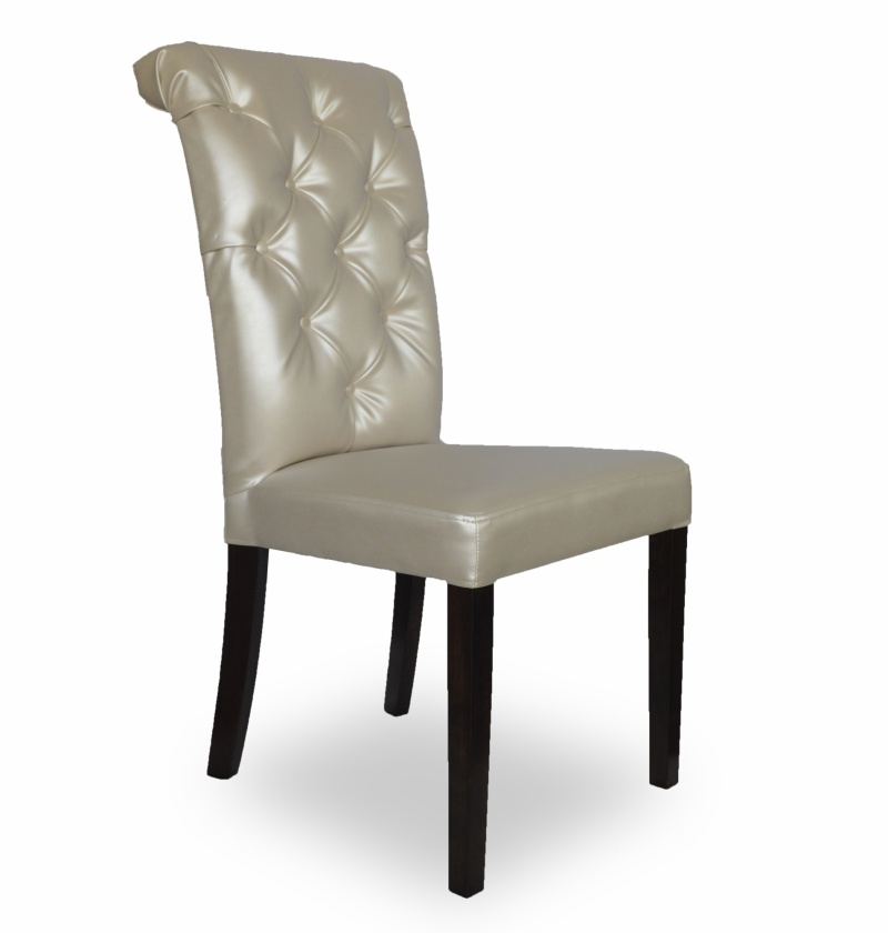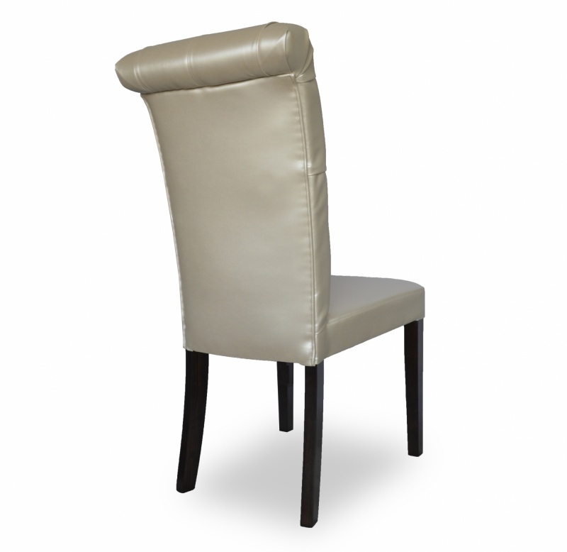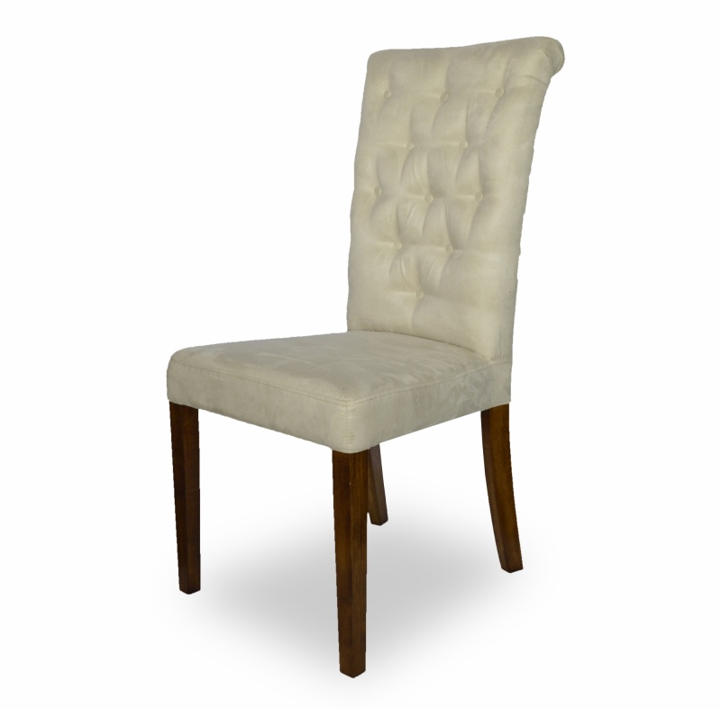 Eleganckie, klasyczne krzesło z pikowaniem chesterfield z guzikami i wałkiem na oparciu. Zastosowanie pianki wysokoelastycznej o dużej gęstości oraz sprężyny faliste na siedzisku poprawia komfort siedzenia, a konstrukcja wykonana z wysokiej jakości drewna bukowego zapewnia wytrzymałość nawet w tak wymagających wnętrzach jak restauracje, kawiarnie czy hotele.