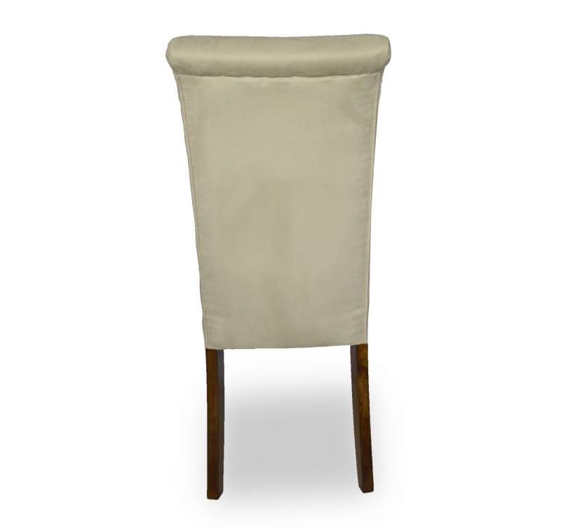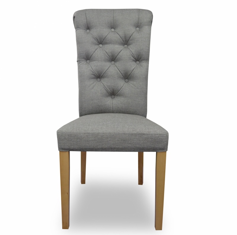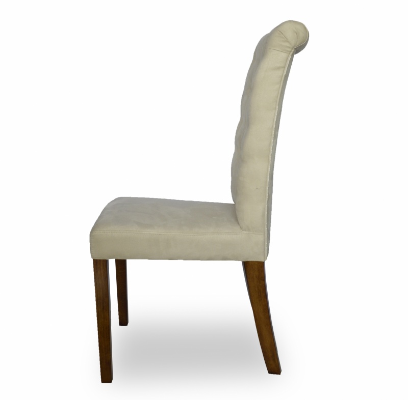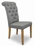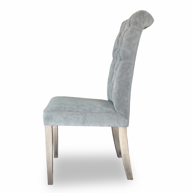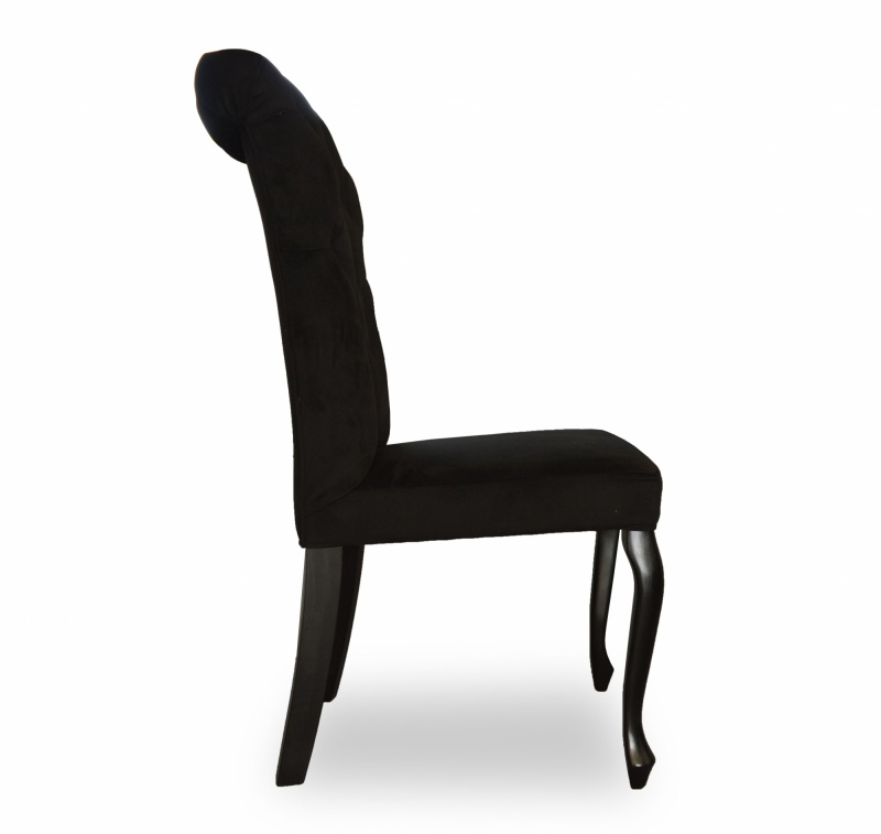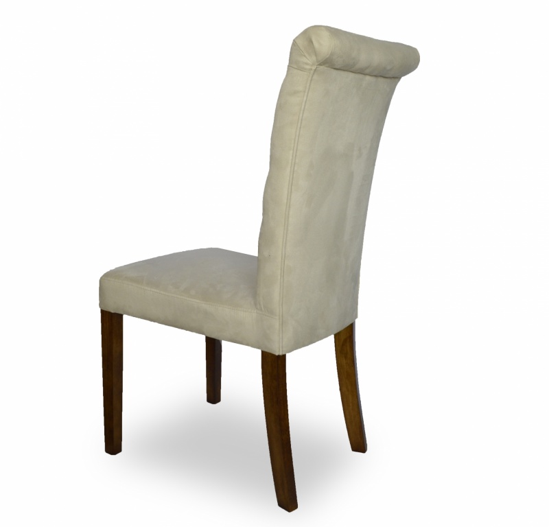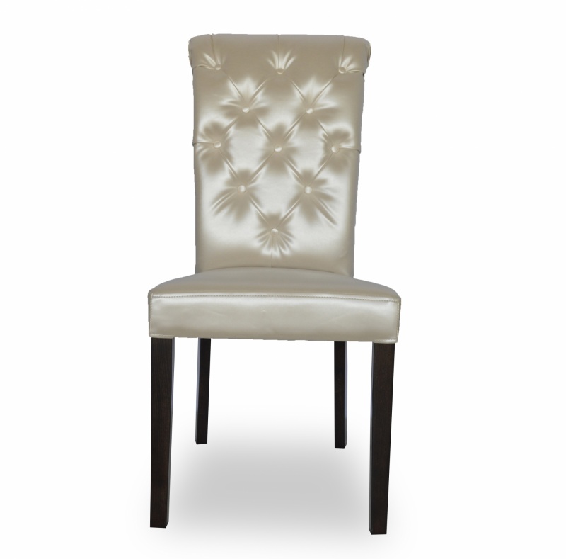 Eleganckie, klasyczne krzesło z pikowaniem chesterfield z guzikami i wałkiem na oparciu. Zastosowanie pianki wysokoelastycznej o dużej gęstości oraz sprężyny faliste na siedzisku poprawia komfort siedzenia, a konstrukcja wykonana z wysokiej jakości drewna bukowego zapewnia wytrzymałość nawet w tak wymagających wnętrzach jak restauracje, kawiarnie czy hotele.