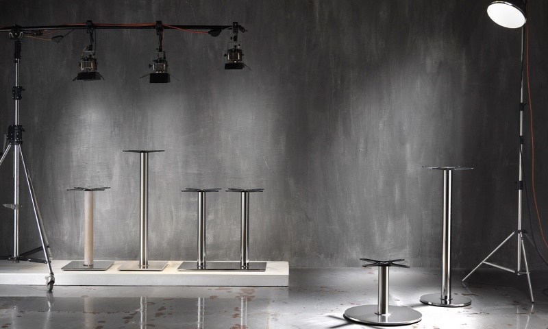 Postument stalowy z kwadratową podstawą i kolumną drewnianą o przekroju okrągłym. Maksymalna wielkość blatu zalecana dla danego...