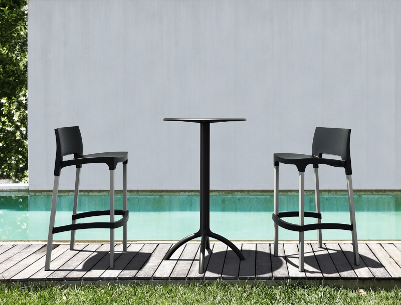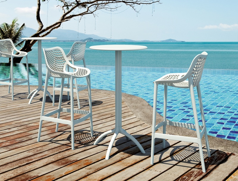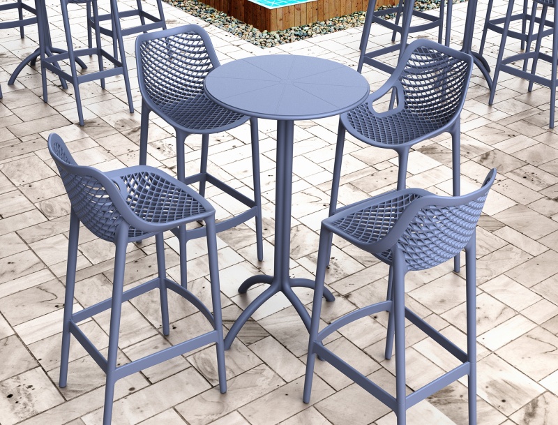 Stół wysoki, barowy wykonany jest z wytrzymałej żywicy odpornej na warunki atmosferyczne. Rama nigdy się nie rozplątuje, nie rdzewieje ani nie gnije. Jest chroniony przed promieniowaniem UV, co gwarantuje, że kolory nie blakną. Do stosowania wewnątrz i na zewnątrz.